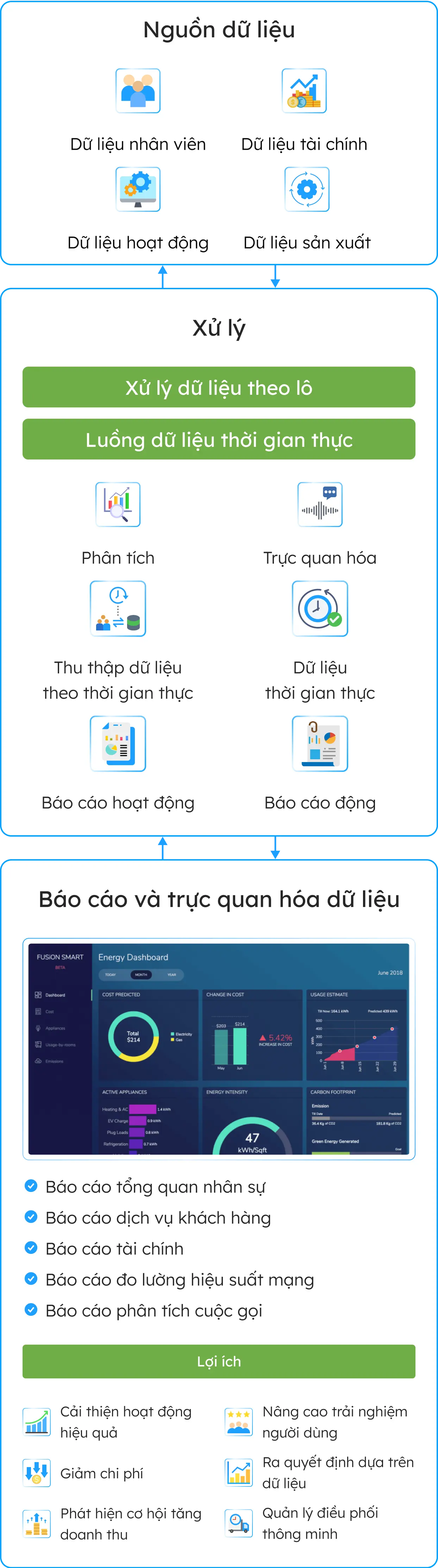 - Thu thập dữ liệu hoạt động, dữ liệu vận hành để có thể quản lý và theo dõi một cách chủ động
