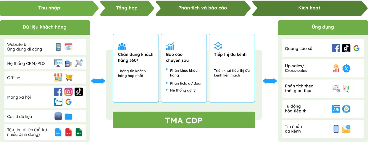 Giải pháp phân tích dữ liệu khách hàng: Nền tảng công nghệ thu thập, quản lý và phân tích dữ liệu khách hàng từ nhiều nguồn khác nhau, giúp doanh nghiệp tận dụng tối đa các dữ liệu hiện có để tối ưu hóa hoạt động kinh doanh và nâng cao trải nghiệm khách hàng
