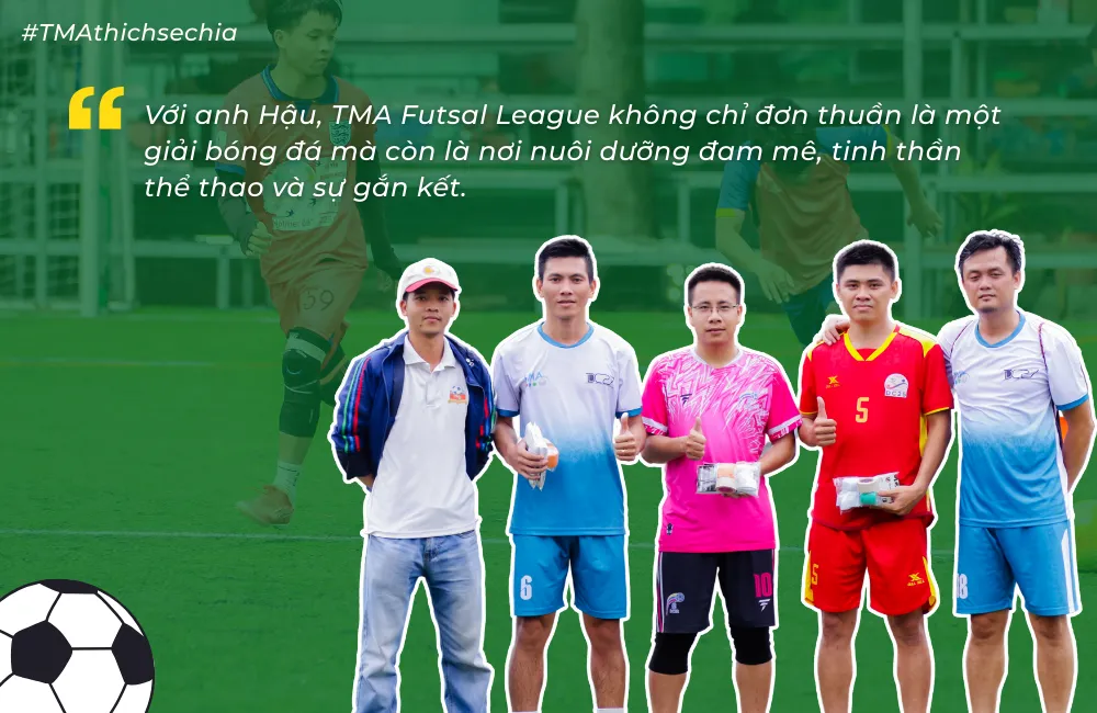 Một điều không thể không đề cập đến chính là sự nhiệt tình của các cầu thủ, những người sẵn sàng di chuyển xa để có mặt đúng giờ từ sáng sớm, đã tiếp thêm động lực để anh và BTC duy trì và phát triển sân chơi này. Với anh Hậu, TMA Futsal League không chỉ đơn thuần là một giải bóng đá mà còn là nơi nuôi dưỡng đam mê, tinh thần thể thao và sự gắn kết. Trên cương vị BTC, anh tự hào khi góp phần tạo nên một sân chơi công bằng và chuyên nghiệp. Khi đứng trên sân với tư cách cầu thủ, đó là nơi anh được cháy hết mình cùng đồng đội.