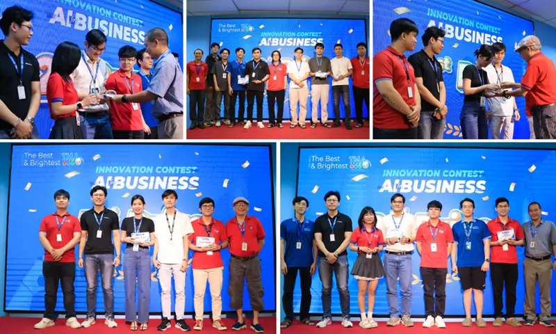 Xin chúc mừng 15 cá nhân, tập thể xuất sắc sẽ giành giải tại Innovation Contest: AI for Business. Tin rằng các bạn sẽ có thêm tự tin và kinh nghiệm để tiếp tục hoàn thiện, phát triển các sản phẩm AI, từ đó nâng cao năng suất, tiến tới làm chủ công nghệ và góp phần vào sứ mệnh trở thành Tập đoàn Công nghệ hàng đầu Đông Nam Á của TMA.