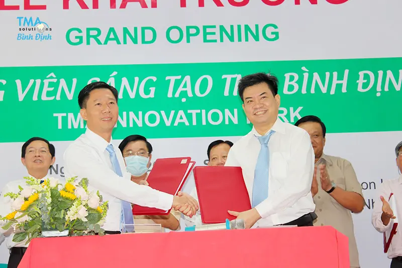 Cũng trong buổi lễ, TMA đã ký kết các biên bản hợp tác quan trọng với UBND tỉnh Bình Định, công ty Becamex và đại học Quy Nhơn gồm thỏa thuận hợp tác phát triển công nghiệp phần mềm giữa tỉnh Bình Định và công ty TMA Solutions giai đoạn 2020 – 2023; Thoả thuận hợp tác giữa trường đại học Quy Nhơn và công ty TMA, thỏa thuận hợp tác về việc phối hợp quảng bá và thu hút đầu tư giữa công viên Sáng tạo TMA và khu công nghiệp Becamex Bình Định.