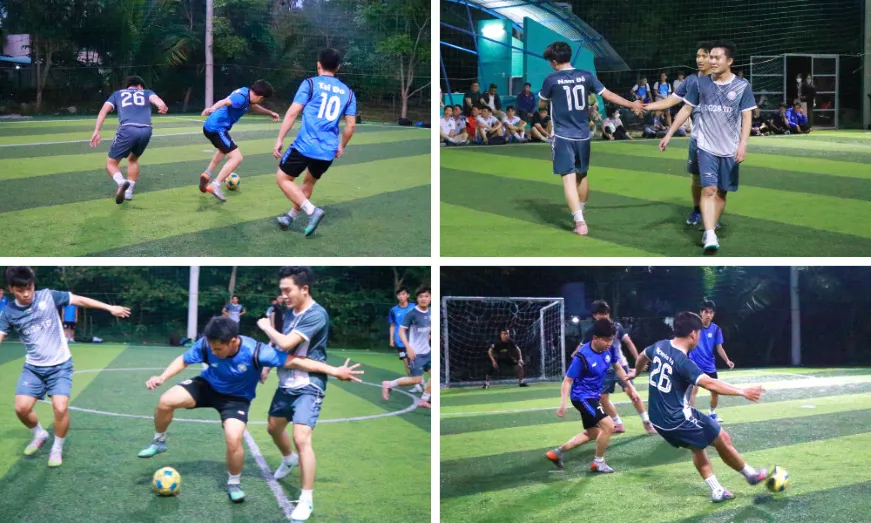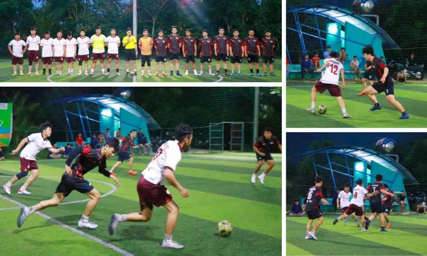 Trận đấu giữa đội DG56 và DG28 diễn ra vô cùng hấp dẫn và căng thẳng từ những phút đầu tiên. Cả hai đội đều thi đấu mạnh mẽ và quyết tâm giành chiến thắng trước sự cổ vũ náo nhiệt từ cổ động viên của 2 đội.