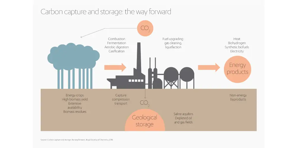 - Các công nghệ CCS thu giữ và lưu trữ khí thải carbon dioxide từ các quy trình công nghiệp, ngăn chúng vào khí quyển.