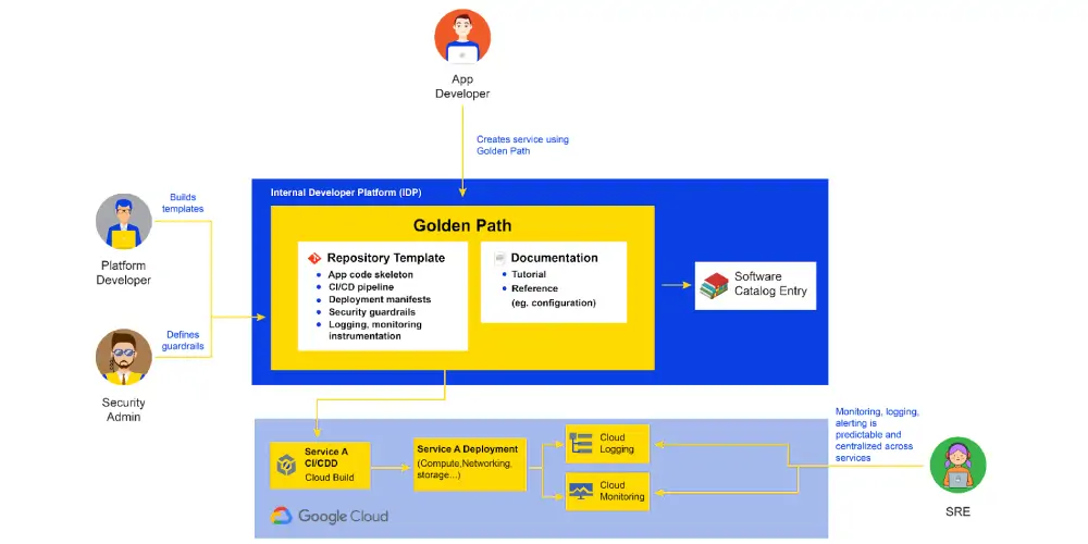 Tạo mẫu và tùy chỉnh: Những tùy chỉnh trong Platform engineering được thực hiện thông qua việc tạo mẫu, cho phép các đội xác định và tái sử dụng các cấu hình trên các dự án khác nhau. Việc tạo mẫu đảm bảo sự nhất quán trong các cấu hình trong khi vẫn cho phép thích ứng với các yêu cầu cụ thể của dự án. Thông qua hệ thống mẫu chuẩn hóa nhưng linh hoạt, Platform engineering thúc đẩy một cách tiếp cận cân bằng giữa việc duy trì các tiêu chuẩn vận hành và đáp ứng các nhu cầu đặc thù của dự án.