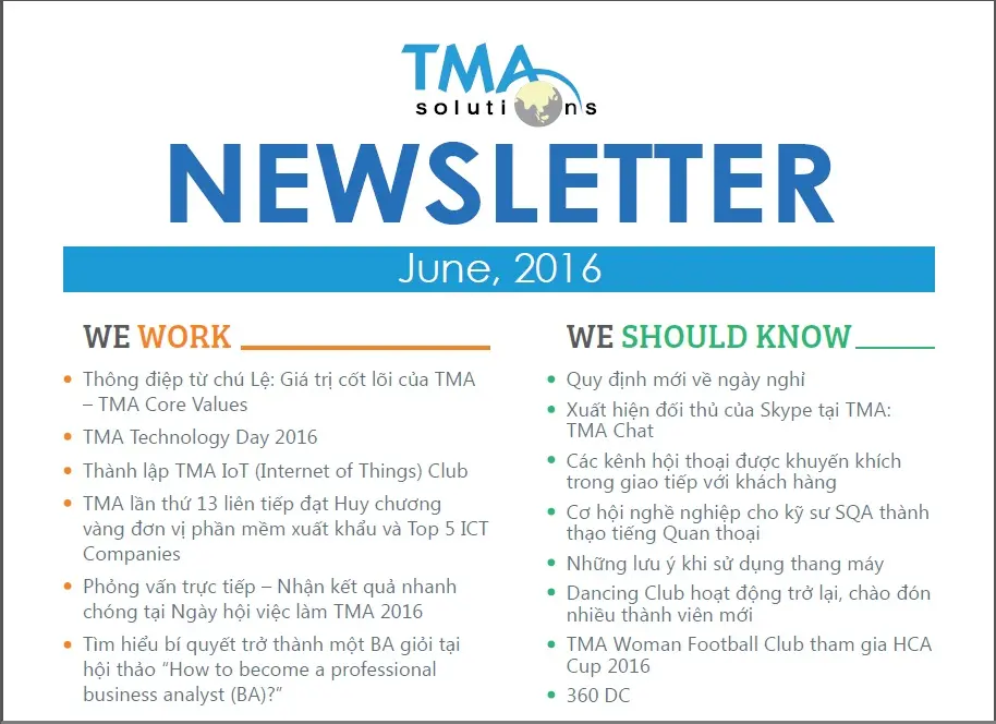 TMA trở thành đối tác phát triển của AUTOSAR. [TGAT 2024] Ai sẽ là người chiến thắng?. TMA chào đón đoàn MBA đến từ các trường Đại học lớn. TMA Innovation và MediExpress Việt Nam...