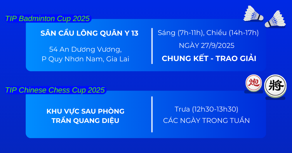 Lễ Khai mạc và tuần thi đấu đầu tiên của TIP Badminton Cup 2025 khép lại với đầy đủ cung bậc cảm xúc: những màn tỏa sáng rực rỡ, những bất ngờ đến từ các gương mặt mới và cả tinh thần chiến đấu bền bỉ đến những phút cuối cùng. Tất cả mới chỉ là khởi đầu cho TIP Sport Day năm nay. Phía trước vẫn còn những trận tranh tài căng thẳng hơn, kịch tính hơn ở tất cả các bộ môn khác. Hãy cùng chờ đón tuần thi đấu tiếp theo, nơi những cái tên xuất sắc nhất sẽ được vinh danh trên bảng vàng danh giá!