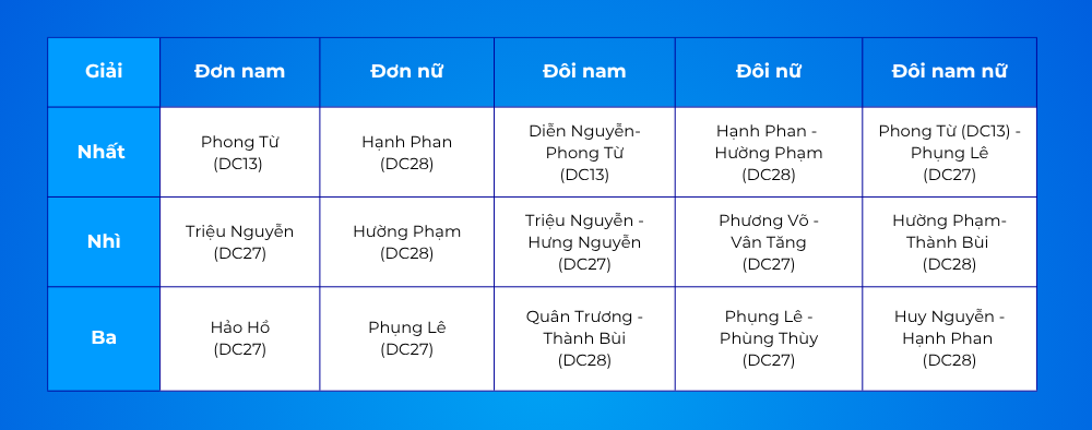Kết quả chung cuộc của mùa giải TIP Badminton Cup 2025: