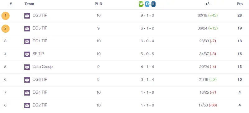 Bảng xếp hạng TMA Bình Định Futsal League 2022 đến hiện tại: