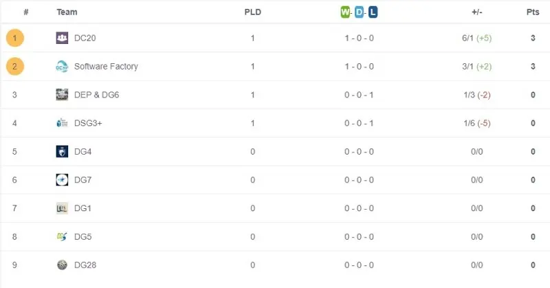 Kết quả cuối cùng của trận đấu là 6-1 nghiêng về phía DC20. Với chiến thắng này, DC20 đã giành được 3 điểm quan trọng và tạm thời chiếm vị trí đầu bảng. Trong khi đó, DSG3+ sẽ phải cố gắng hơn nữa ở các trận đấu tiếp theo để có thể lấy lại phong độ.