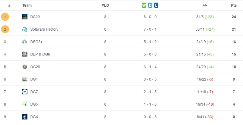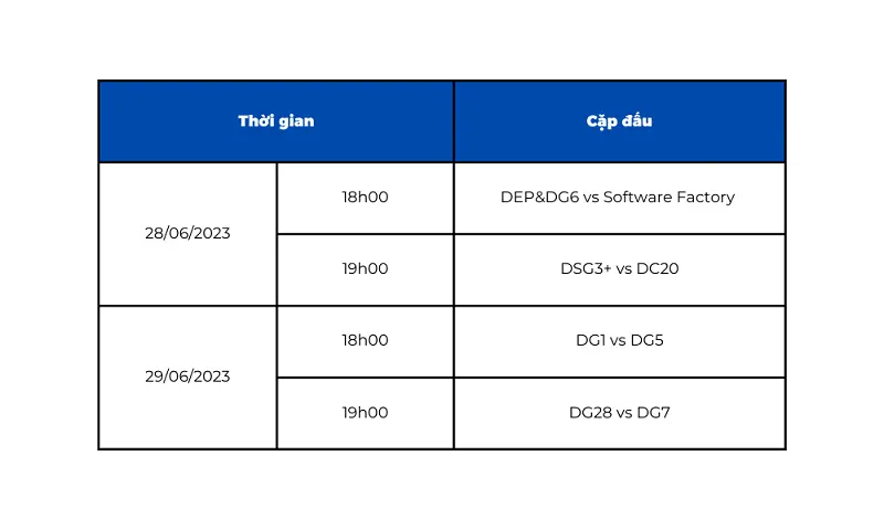 Trước khi đến với màn khởi tranh cuộc đua lượt về, lượt đi kết thúc bởi trận đấu của 2 đội DG28 và DG5. Cách biệt 6-1 đã đưa chiến thắng chung cuộc về cho DG28. Chúc mừng DG28 và cảm ơn hai đội đã mang lại một trận đấu mãn nhãn với những sự bứt phá hấp dẫn.