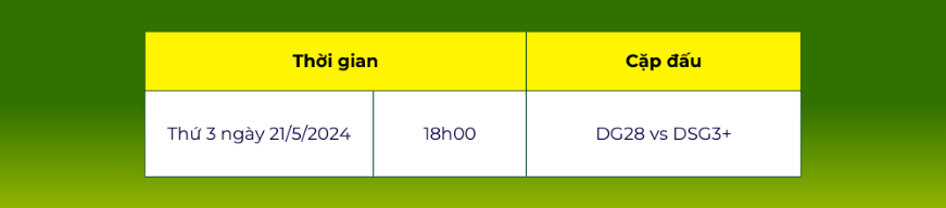 Trong khi DSG3+ khởi động giải đấu khá khập khiễng nhưng đã dần đẩy cao phong độ trong những lượt đấu gần đây thì điều ngược lại đang diễn ra đối với DG28. Dù bắt đầu mùa giải khá tốt, họ lại để lộ nhiều điểm yếu trong những vòng đấu cuối lượt đi, dẫn tới thứ hạng gần như “đội sổ”. Liệu DSG3+ sẽ giành 3 điểm để giành tấm vé vào top 3 lượt đi hay DG28 sẽ có màn lội ngược dòng ngoạn mục?