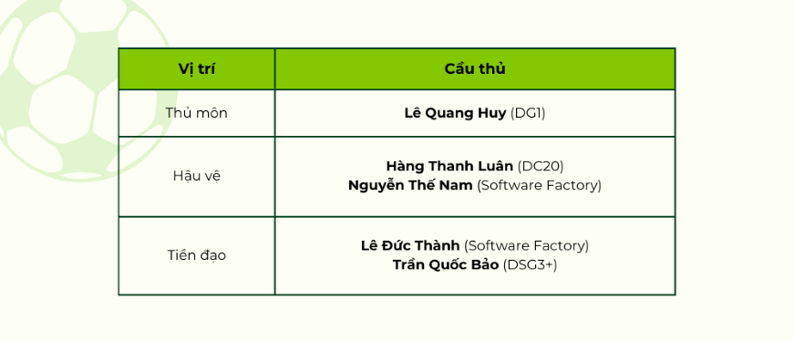 Trận đấu diễn ra dưới mưa khiến phần sân cỏ có phần trơn trượt, tạo không ít khó khăn, trở ngại cho các cầu thủ thực hiện những đợt tấn công nhanh. Mãi đến gần cuối hiệp 2, DG28 mới có cơ hội vươn lên dẫn trước. Sau pha phản công chớp nhoáng từ đường căng ngang của Quý, Nguyên Rô đã nhanh chóng lao vào dứt điểm, nâng tỷ số lên 2-1 cho DG28. Tuy nhiên, DSG3+ không dễ dàng từ bỏ bởi sau đó, nhờ một pha bóng lộn xộn trước khung thành DG28, Quốc Bảo một lần nữa chứng tỏ khả năng săn bàn nhạy bén của mình khi ghi bàn gỡ hòa, ấn định tỷ số 2-2. Kết quả hòa chung cuộc đã giúp DSG3+ góp mặt vào top 3 của lượt đi TMA Bình Định Futsal League 2024. Ngoài Top 1, 2, 3, đội hình tiêu biểu lượt đi cũng đã lộ diện với các cầu thủ có thành tích nổi bật.