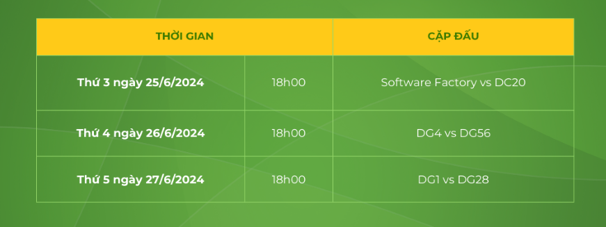 Ở diễn biến khác, trở lại sau một tuần nghỉ ngơi, “pháo thủ” DG4 sẽ hội ngộ với DG56 tại vòng 12. Hai đội đã có những chuẩn bị gì cho lượt trận này? Liệu sau “cú trượt dài” chỉ dừng lại kết quả hòa và thua, DG56 sẽ có màn bứt phá nào để tìm kiếm được chiến thắng đầu tay?