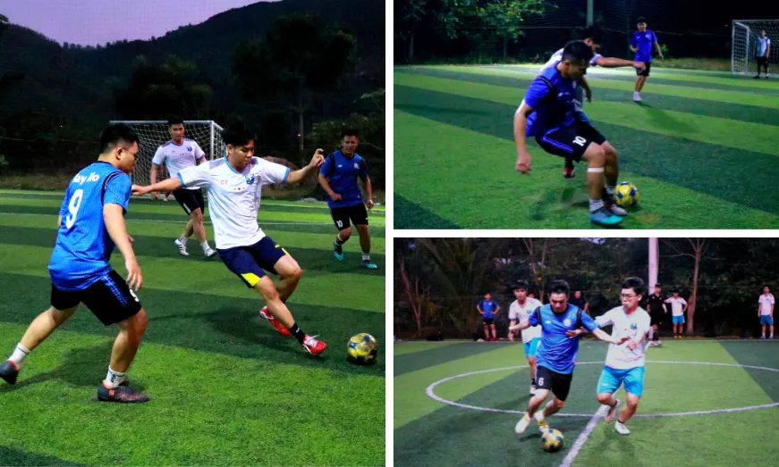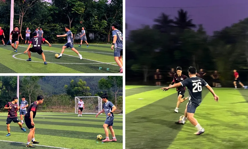 Sự cân bằng trên bảng tỉ số đã khiến trận đấu trở nên hấp dẫn hơn bao giờ hết. Đến phút thứ 32, Hậu Nguyễn của DG1 tiếp tục ghi dấu ấn với một pha sút bóng thẳng từ giữa sân về cuối sân tưởng chừng “vô nghĩa” nhưng lại rơi vào góc chết của khung thành DG28, đưa DG1 vượt lên dẫn trước, cho thấy tài năng và khả năng tấn công sắc bén của mình trong trận đấu này. Tiếp theo sau đó, đồng đội Thọ (DG1) đã khép lại màn trình diễn xuất sắc của mình với một bàn thắng quan trọng, mở rộng khoảng cách tỉ số 3-1 giữa hai đội.