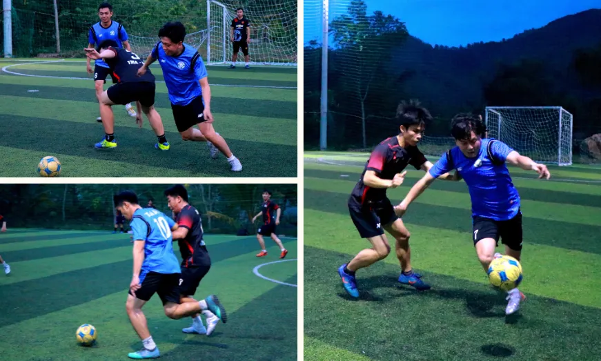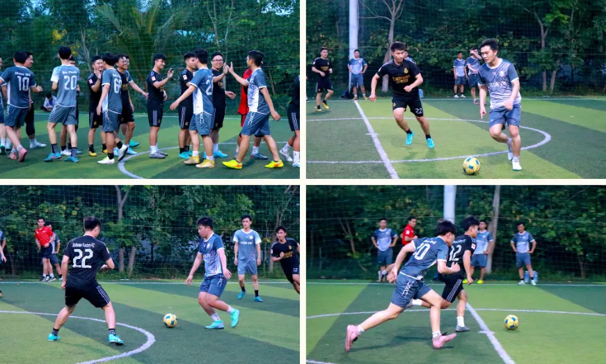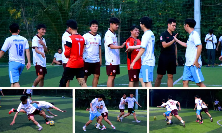 Cuộc hội ngộ giữa các “cao thủ” của DG56 và DG1 đã diễn ra đầy kịch tính và căng thẳng, mỗi đội đều thể hiện quyết tâm và tinh thần chiến đấu mạnh mẽ. Trận đấu bắt đầu với thế trận cân bằng, cả hai đội đều tạo ra những cơ hội nguy hiểm. May mắn đã mỉm cười với DG1 khi đội đã phá vỡ thế cân bằng nhờ “ngôi sao” Thọ ghi bàn mở tỷ số, đánh bại thủ môn đội DG56, đưa DG1 dẫn trước 1-0.