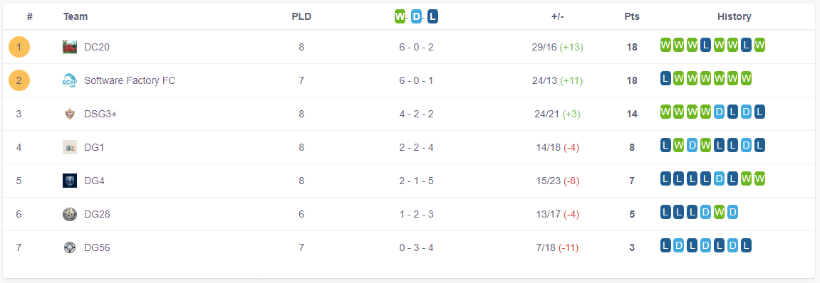 DC20 đã lấy lại phong độ với đội hình chất lượng sau kỳ chuyển nhượng mùa hè. Họ đã có chiến thắng đậm đà trước đối thủ DG4, “phục thù” thành công tại lượt về.