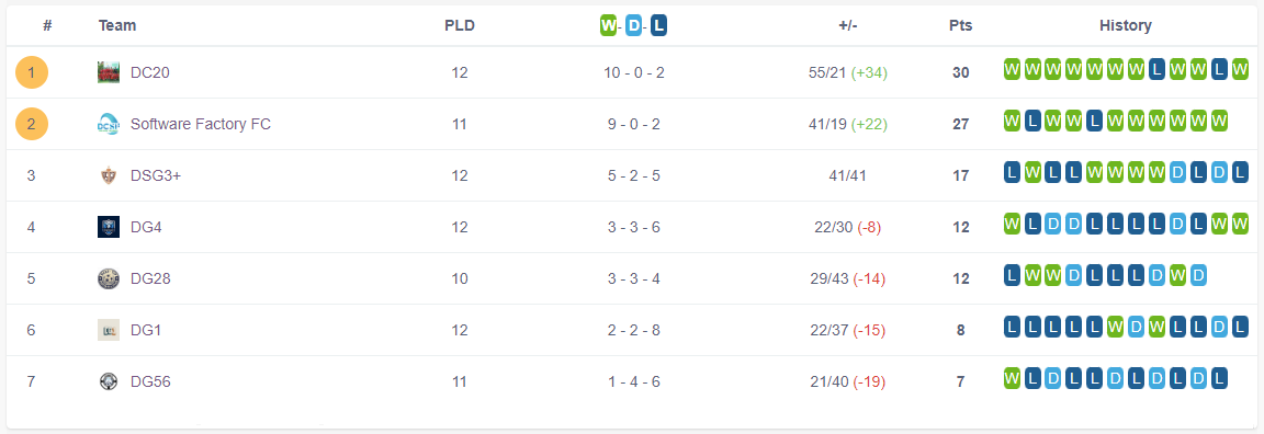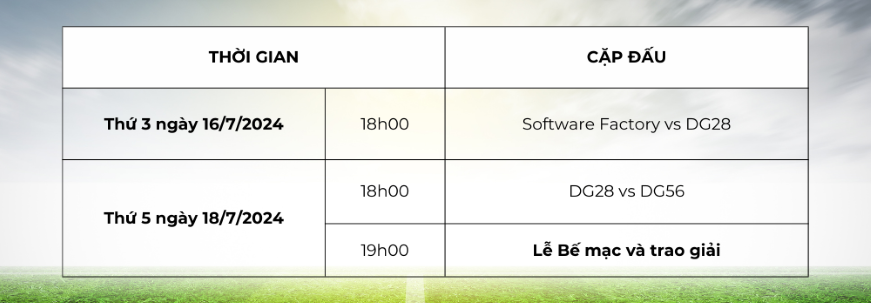 Trận đấu mang tính chất quyết định với DG28 sẽ là cơ hội cuối cùng để Software Factory (SF) có thể đánh bại DC20 trên hành trình chinh phục đỉnh cao. SF đang kém DC20 3 điểm và 12 bàn thắng trên BXH, họ cần 1 chiến thắng cách biệt trước DG28 thì mới có thể vượt lên. Dù cơ hội lúc này là khá mong manh, nhưng bóng đá vẫn luôn ẩn chứa những điều bất ngờ. Biết đâu họ sẽ làm nên kỳ tích?