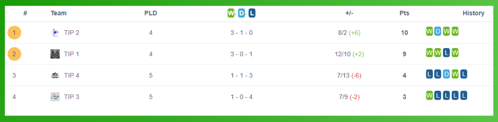 TIP-4 nhập cuộc chủ động và không giấu giếm ý đồ sớm áp đặt thế trận. Và chỉ sau vài phút bóng lăn, đội bóng này đã khiến khán giả theo dõi dâng trào cảm xúc khi Thành Lê có pha dứt điểm đầy quyết đoán, mở tỷ số 1-0 cho TIP-4. Đây là bàn thắng thứ 4 của Thành Lê tại giải, nối tiếp phong độ ghi bàn ổn định của anh suốt từ đầu lượt đi. Sau bàn thắng, TIP-4 càng tự tin kiểm soát bóng và gây sức ép mạnh mẽ lên phần sân đối phương, tạo ra không ít tình huống sóng gió buộc hàng phòng ngự TIP-3 phải làm việc vất vả.