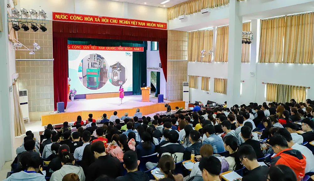 Nhân dịp này, Chú cùng các chuyên gia TMA cũng đã có những buổi giới thiệu về TMA, TIP cùng hàng trăm cơ hội thực tập, việc làm hấp dẫn. Ngoài ra, các thành viên đoàn còn mang đến cho các bạn sinh viên những kiến thức bổ tích về nghành Khoa học Dữ liệu, một ngành mới và hot trong lĩnh vực công nghệ thông tin. Đông đảo các bạn sinh viên thể hiện sự quan tâm, hào hứng và giao lưu sôi nổi với các diễn giả. Sau các buổi giao lưu, hơn 100 sinh viên có nguyện vọng thực tập, làm việc tại TIP đã gửi thông tin đăng ký.