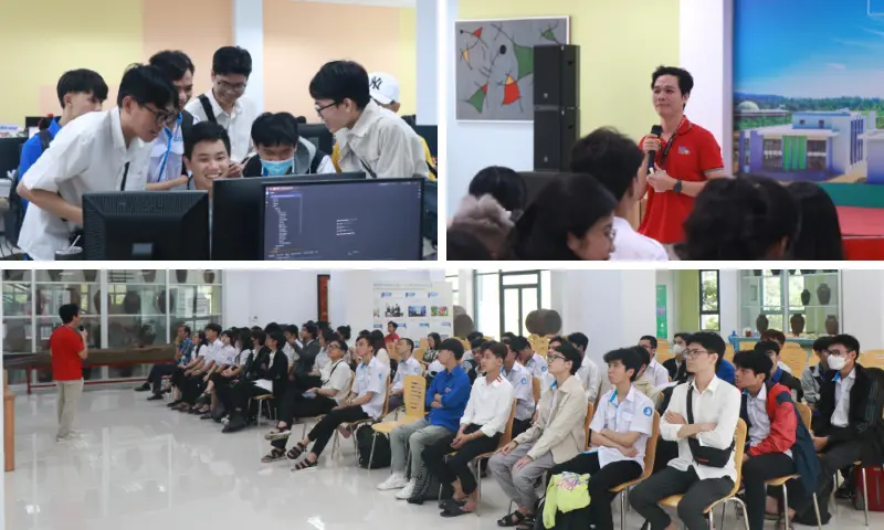 Đại diện Tập đoàn, anh Ngô Nguyễn Duy Bình – Giám đốc Dự án và anh Nguyễn Thành Đời – Kỹ sư Cấp cao đã chia sẻ đến các bạn những thông tin thú vị xoay quanh môi trường làm việc tại TMA cũng như định hướng nghề nghiệp cho sinh viên CNTT.