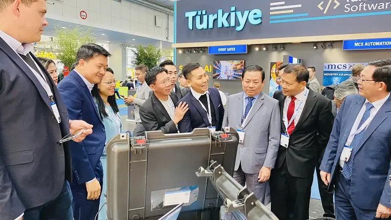 Trong ngày thứ 2 của hội chợ Hannover, TMA rất vinh hạnh được chào đón đoàn Đại Sứ Quán Việt Nam tại Berlin và đoàn Lãnh Đạo tỉnh Bình Định đã ghé thăm gian hàng, cùng nhau thảo luận về cách các sản phẩm, công nghệ đổi mới của TMA.