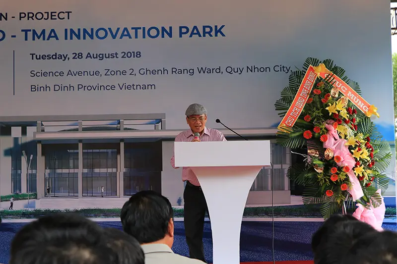 Ông Hồ Quốc Dũng – Chủ tịch UBND tỉnh Bình Định đã chia sẻ sự vui mừng khi từ nay, nền CNTT của tỉnh có một bước phát triển đột phá, tạo điều kiện cho con em trong tỉnh cũng như khu vực lân cận có một môi trường làm việc chuyên nghiệp, có thể phát triển sự nghiệp ổn định và bền vững. Trong bài phát biểu phúc đáp, chú Lệ cũng bày tỏ lời cảm ơn sự ủng hộ hết mình của lãnh đạo tỉnh Bình Định cũng như sự hỗ trợ nhiệt tình của các sở, ban ngành, giúp TMA chạm tay đến giấc mơ vươn cao, vươn xa. TMA sẽ đầu tư nhanh và mạnh, rút ngắn thời gian thi công toàn bộ Công viên Sáng tạo xuống còn khoảng 3 năm. Chú cũng tin tưởng sự đầu tư lớn của TMA sẽ giúp thu hút thêm nhiều công ty khác đến đầu tư tại Thung lũng Sáng tạo Quy Nhơn, biến nơi đây trở thành một khu đô thị khoa học và giáo dục hàng đầu tại miền Trung.