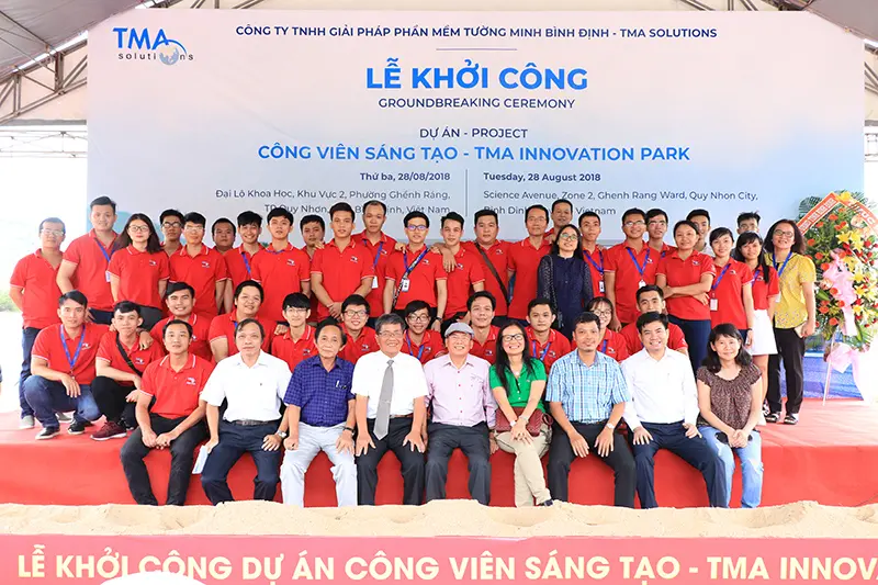 Sáng sớm hôm nay, 28/08/2018, TMA Innovation Park – Công viên Sáng tạo TMA đã chính thức khởi công tại Thung lũng Sáng tạo Quy Nhơn, P. Ghềnh Ráng, TP. Quy Nhơn, Bình Định. Buổi lễ có sự hiện diện của ông Nguyễn Thanh Tùng - Bí thư Tỉnh ủy, Chủ tịch HĐND tỉnh Bình Định, ông Hồ Quốc Dũng – Chủ tịch UBND tỉnh Bình Định, lãnh đạo các sở ban ngành tỉnh Bình Định, đại diện các trường đại học. Về phía công ty, chúng ta có sự hiện diện của Cô Ngọc Anh, chú Hữu Lệ, các lãnh đạo cao cấp và toàn thể nhân viên TMA Bình Định.
