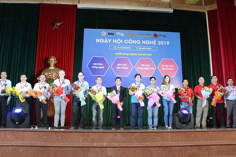 Ngày 21-22/09 vừa qua, trường đại học Quy Nhơn rộn ràng, tưng bừng chưa từng thấy với Ngày hội Công nghệ 2019 – Sân chơi công nghệ lớn nhất trong năm tại đây. Đây là sự kiện do TMA phối hợp cùng nhà trường tổ chức. Ngoài các diễn giả từ TMA Innovation Center, TMA Blockchain Center, TMA Fintech Center và trường đại học Quy Nhơn, chương trình còn có sự tham gia của các diễn giả đến từ hội Tin học Bình Định, đại học Việt – Đức, các công ty Travel2pay, Ninja-Q và khách mời từ các trường đại học lân cận. Hơn 500 sinh viên yêu thích công nghệ cũng đã đến tham gia ngày hội.