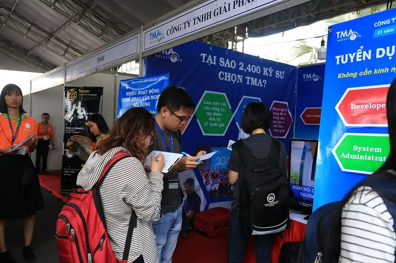 Ngày 10/9/2018, TMA tham gia hoạt động tuyển dụng tại ngày hội Doanh nghiệp và Sinh viên năm 2018. Cùng hòa vào không khí khai giảng rộn ràng của trường Đại học Kinh tế - Luật, gian hàng của TMA cũng có rất đông các bạn sinh viên tham quan. Không chỉ có các bạn SV năm 3, năm 4 đến phỏng vấn mà các bạn sinh viên năm 1, 2 cũng rất thích thú khi được tư vấn, định hướng về nghề nghiệp sau này và đem về nhà nhiều phần quà hấp dẫn.