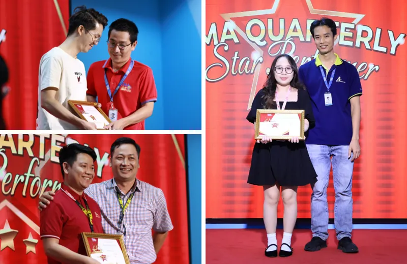 Ngay sau đó, các đại diện BGĐ đã trực tiếp chúc mừng và trao bằng khen cho 27 Star Performers. Những nụ cười rạng rỡ và những tràng pháo tay nồng nhiệt từ đồng nghiệp ở cả hai đầu cầu đã tạo nên một buổi lễ giàu cảm xúc.