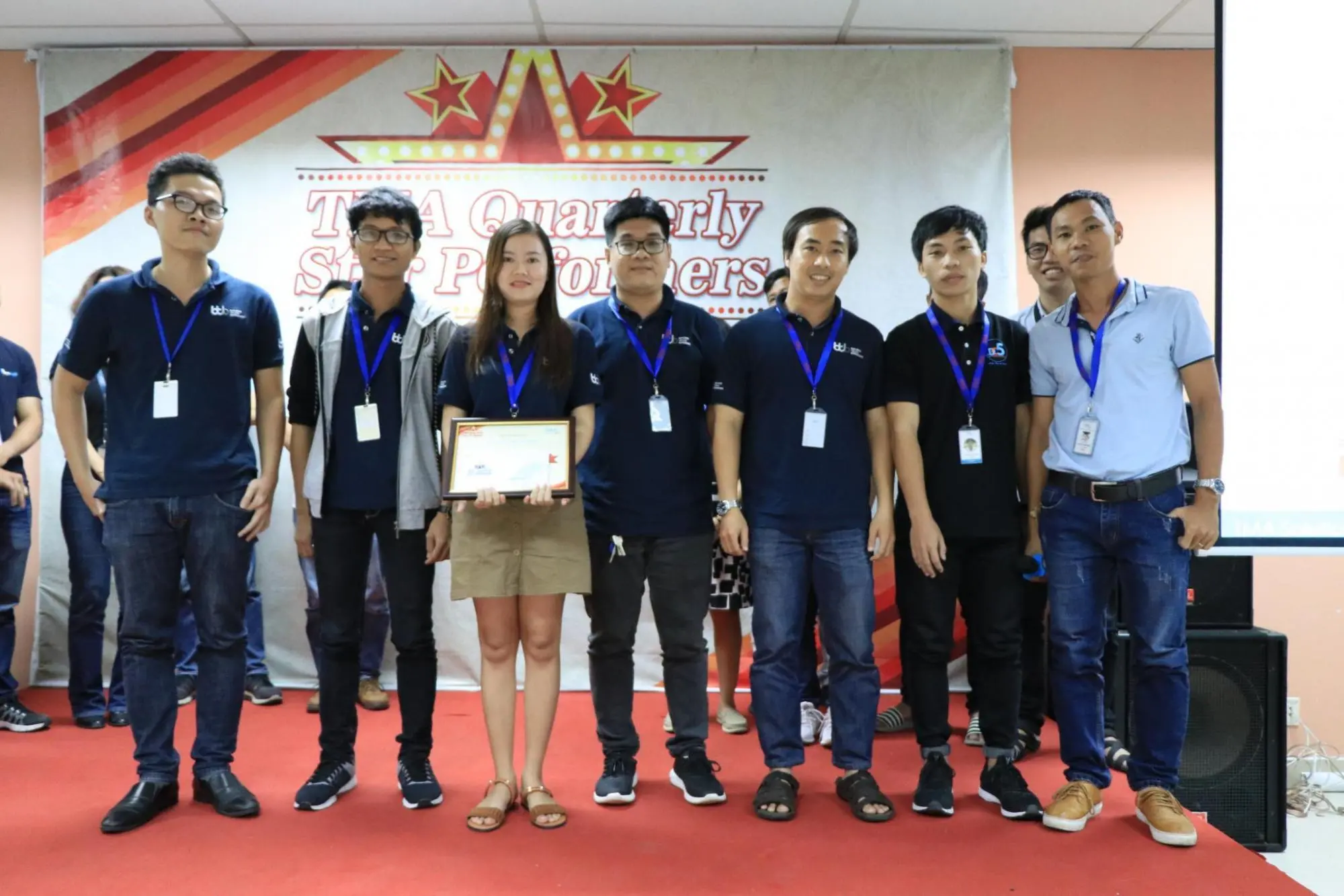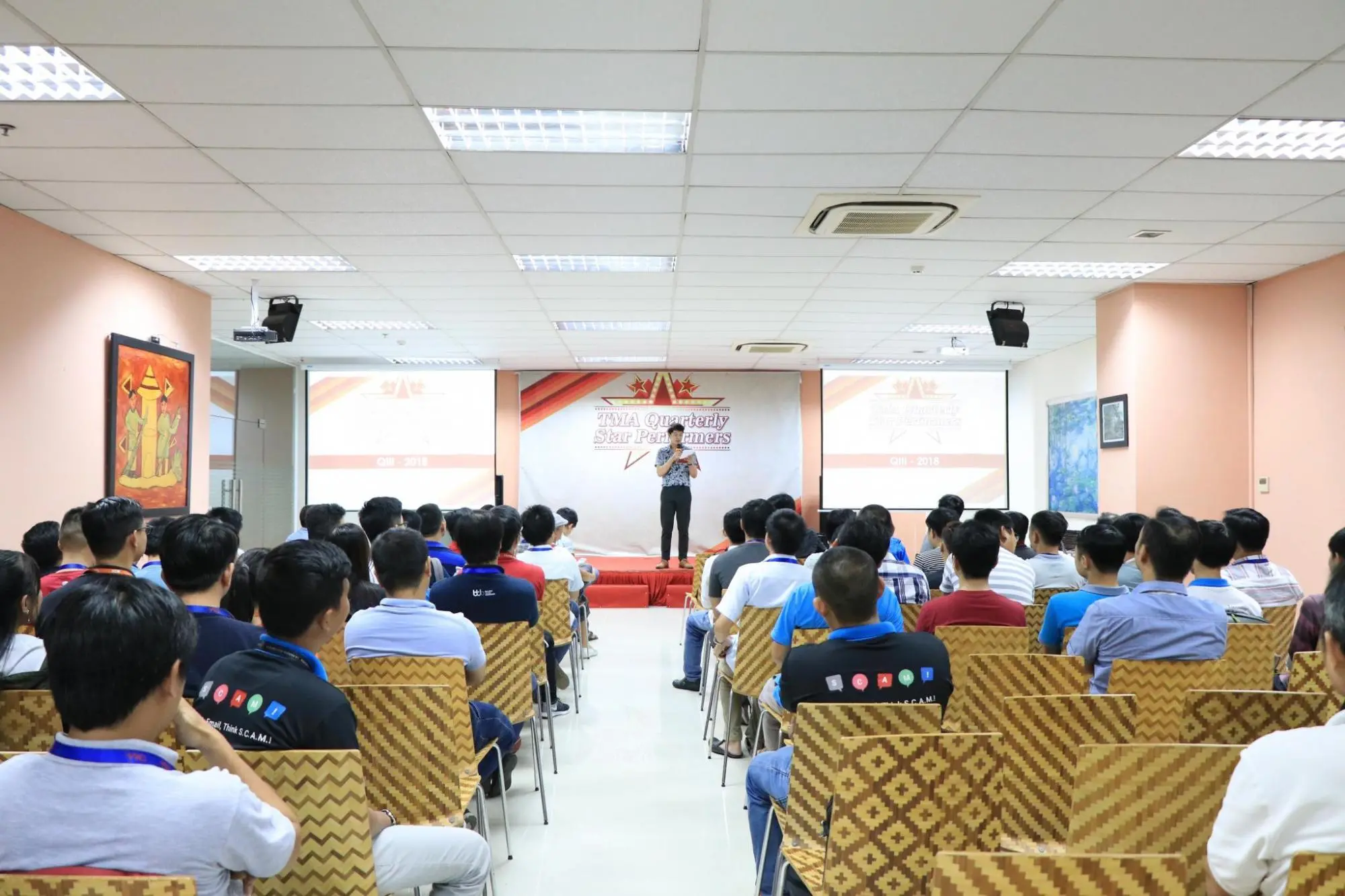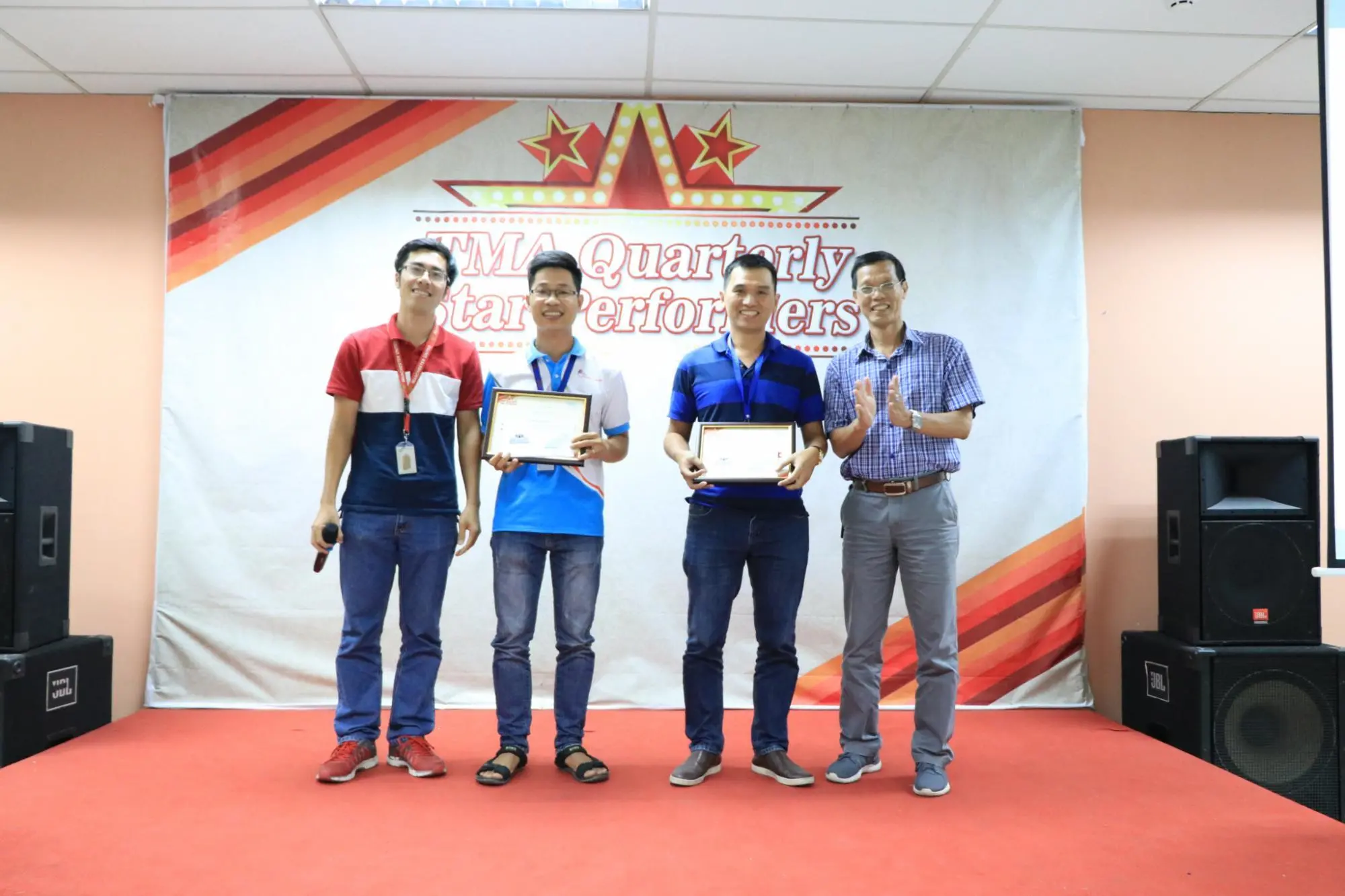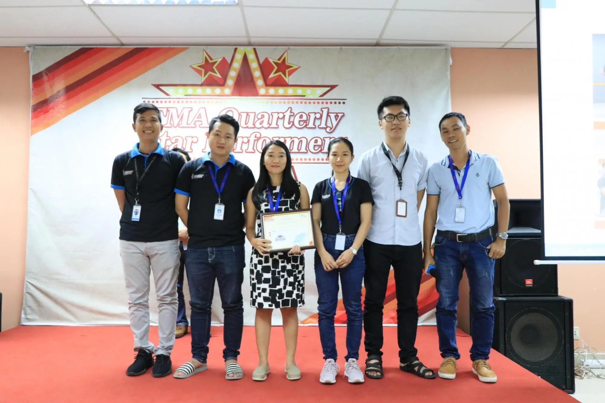 Sau một tuần được công bố danh tính rộng rãi trên tất cả các kênh truyền thông của công ty, chiều qua (16/10/2018), 21 cá nhân, tập thể có thành tích xuất sắc nhất của quý III - 2018 đã cùng nhau hội tụ tại buổi lễ vinh danh TMA Quarterly Star Performer, được tổ chức tại Hall A, Lab6. Buổi lễ có sự hiện diện của chú Lệ, ban lãnh đạo công ty và rất nhiều anh chị em đồng nghiệp.
