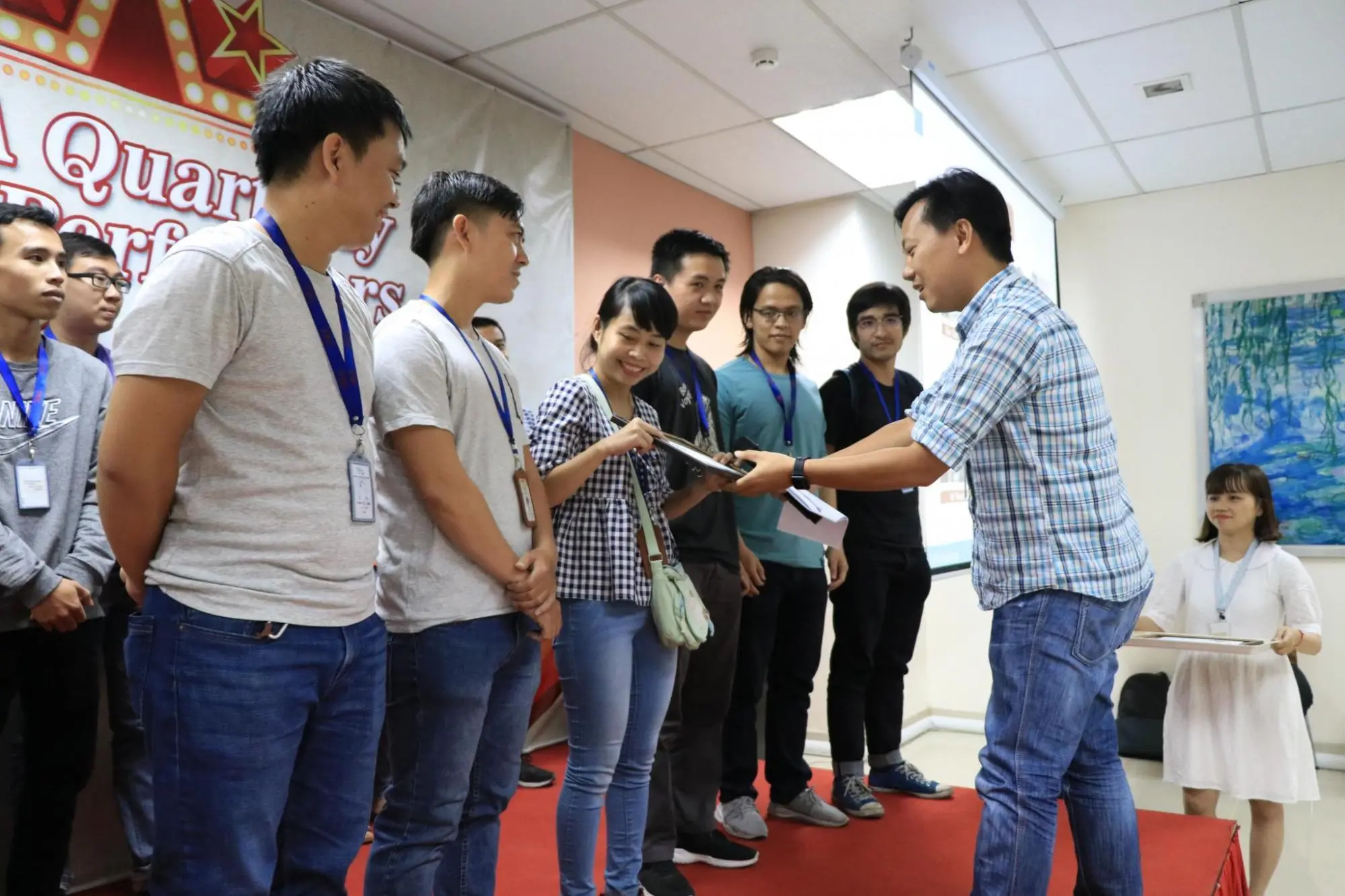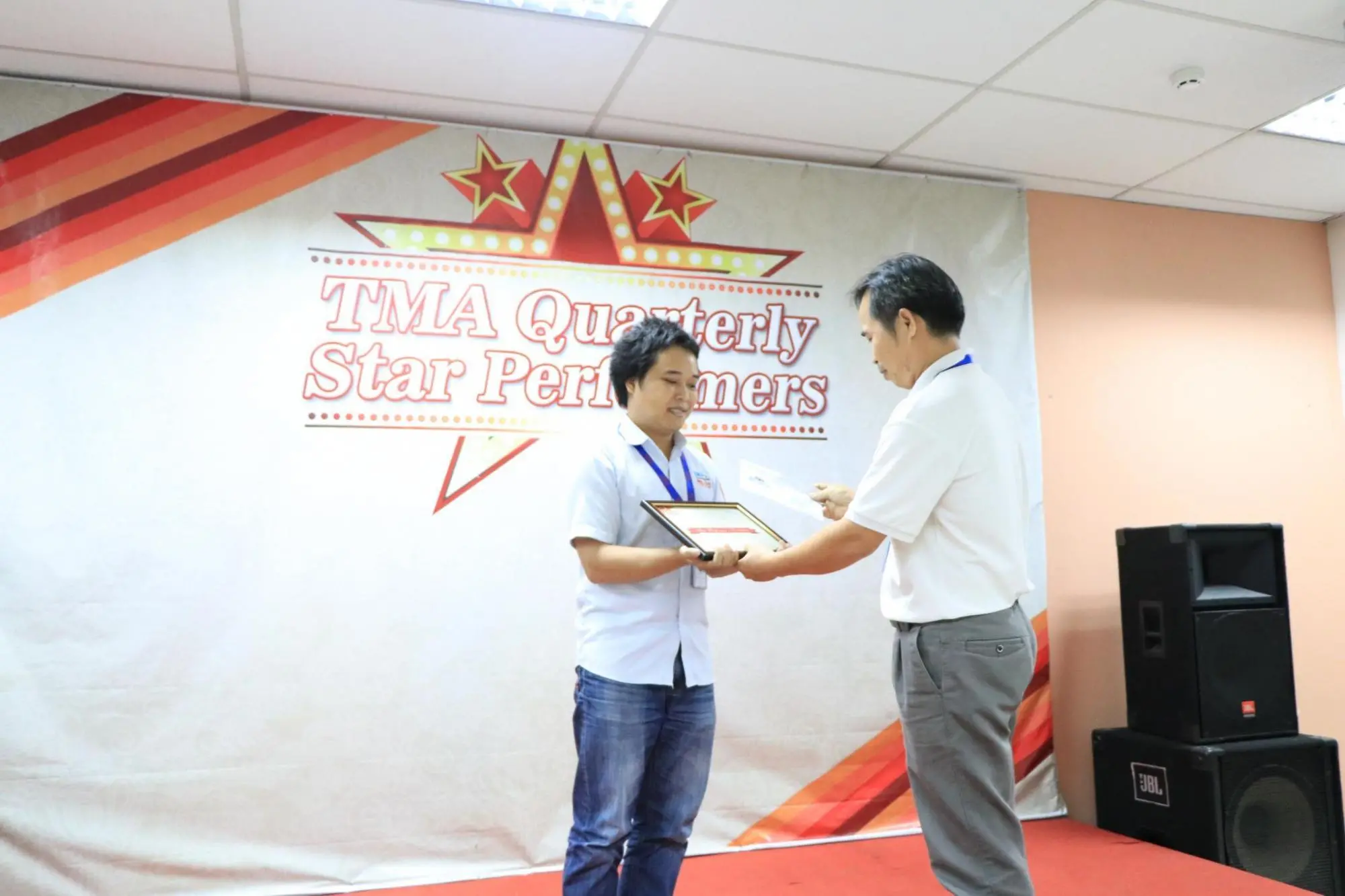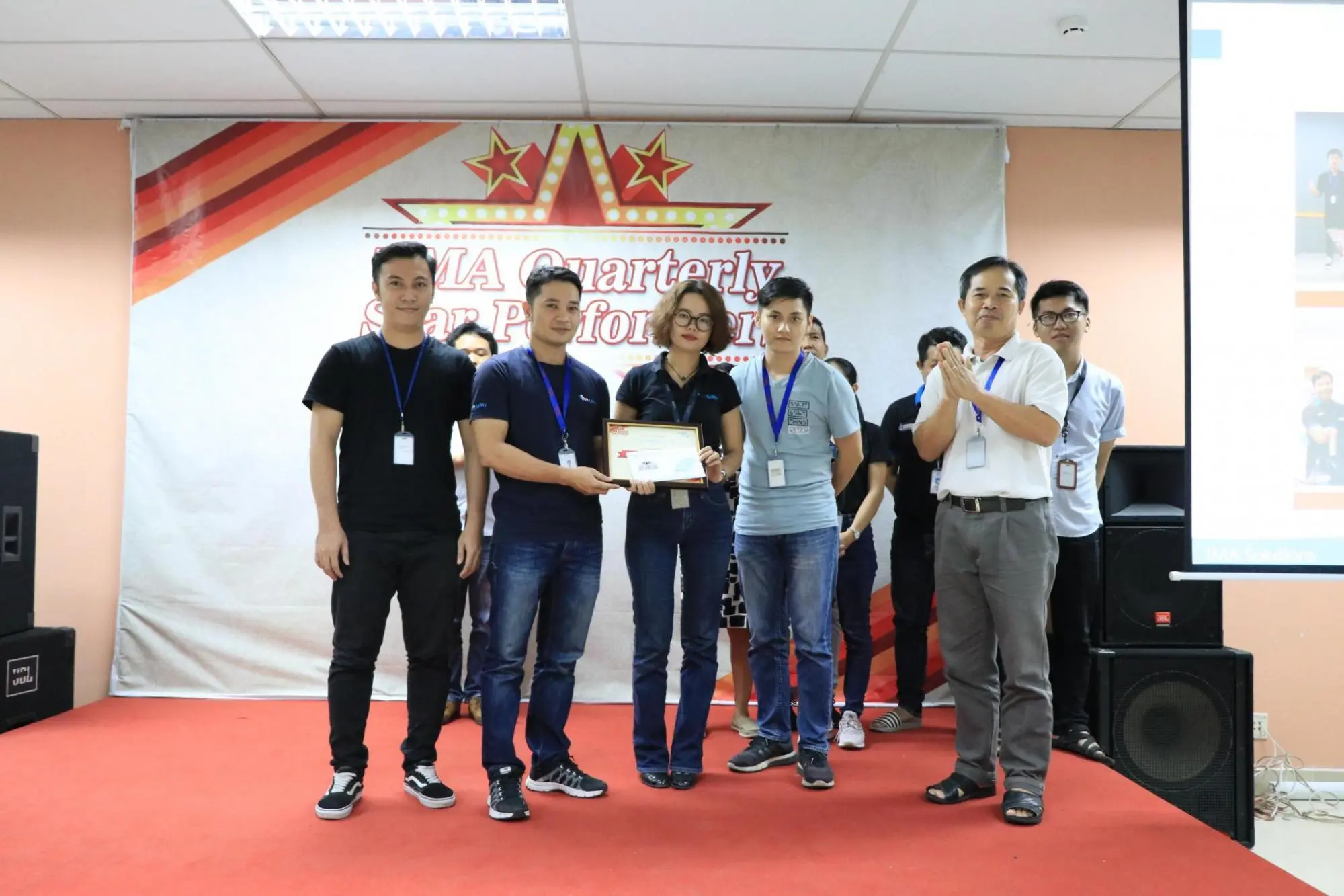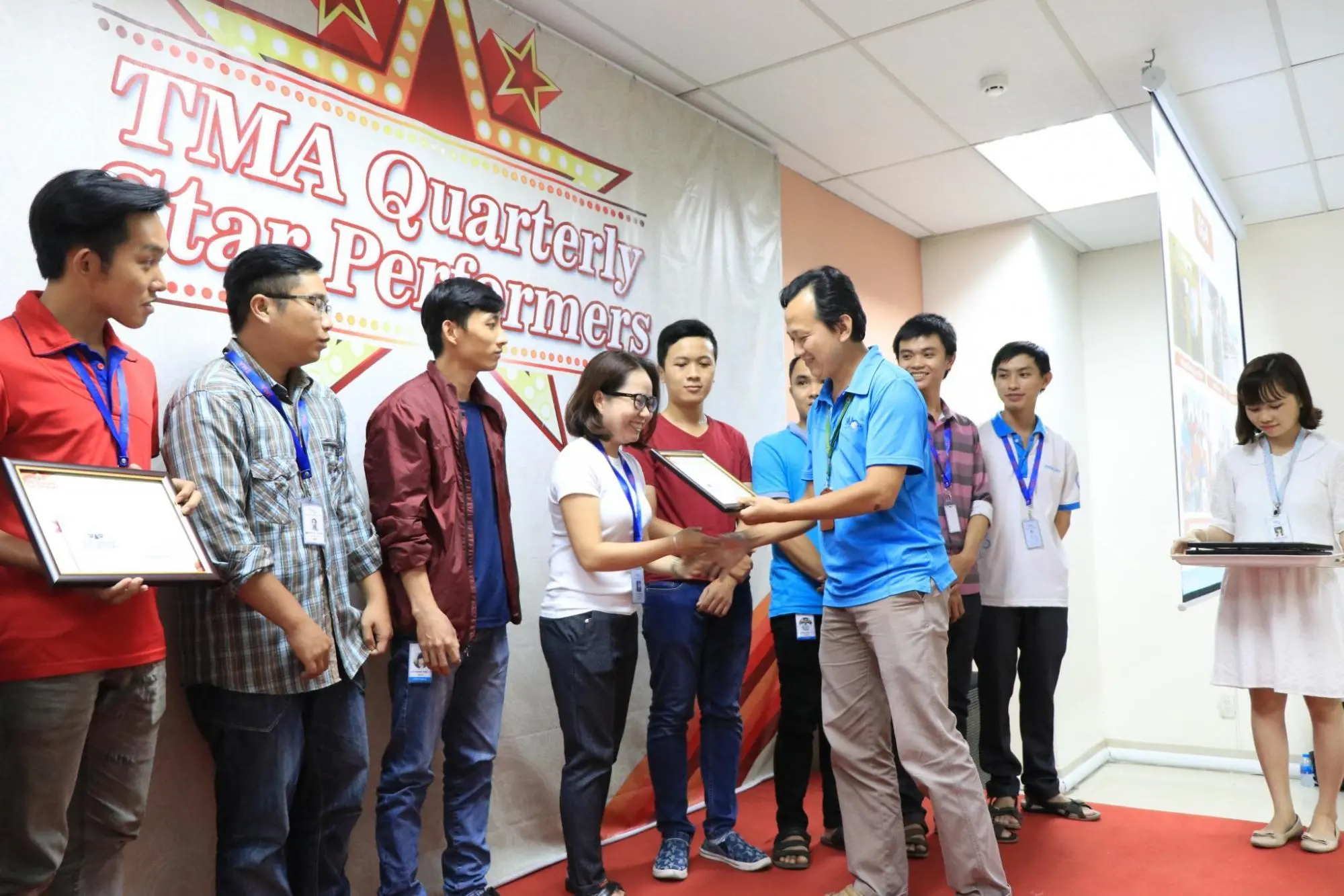 Sau một tuần được công bố danh tính rộng rãi trên tất cả các kênh truyền thông của công ty, chiều qua (16/10/2018), 21 cá nhân, tập thể có thành tích xuất sắc nhất của quý III - 2018 đã cùng nhau hội tụ tại buổi lễ vinh danh TMA Quarterly Star Performer, được tổ chức tại Hall A, Lab6. Buổi lễ có sự hiện diện của chú Lệ, ban lãnh đạo công ty và rất nhiều anh chị em đồng nghiệp.