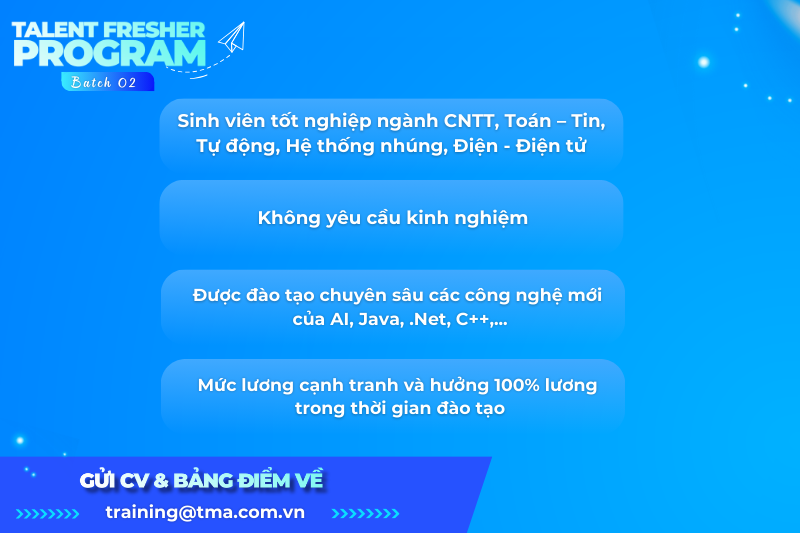 Tham gia ngay bằng cách gửi CV và Bảng điểm về: training@tma.com.vn
