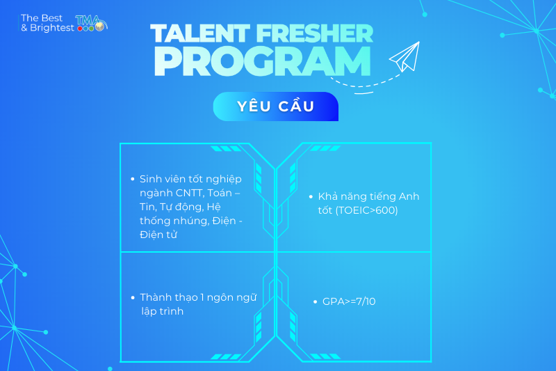 👉 Sinh viên mới tốt nghiệp các ngành: CNTT, Toán – Tin, Tự động, Hệ thống nhúng, Điện - Điện tử (GPA ≥ 7.0/10)