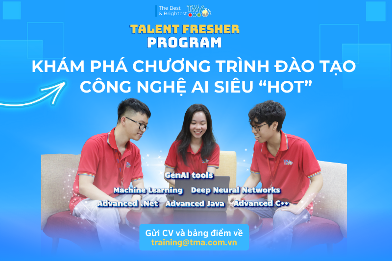 TMA Talent Fresher Program 2024 là Chương trình đào tạo công nghệ AI siêu “HOT” dành cho các bạn sinh viên mới tốt nghiệp ngành CNTT, Toán-Tin…