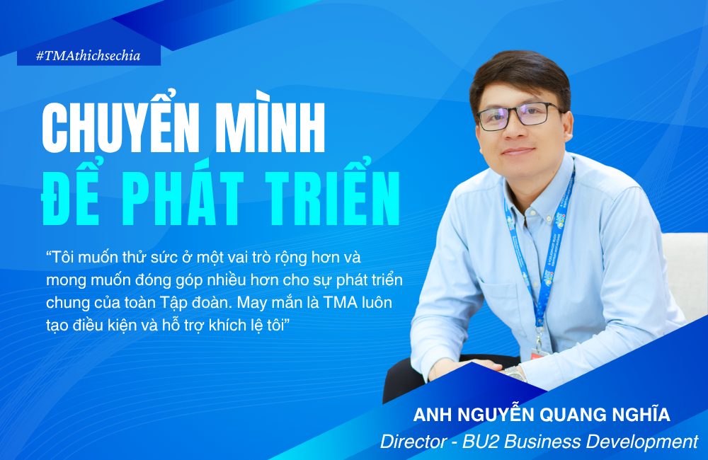 Trước khi đảm nhận vị trí hiện tại, anh Nghĩa từng nắm giữ vai trò Delivery Director trong suốt 4 năm, trực tiếp “ra tay” quản lý chất lượng các dự án, đảm bảo tiến độ công việc và đặt mục tiêu mang lại những sản phẩm tốt nhất đến cho khách hàng. Tuy nhiên, chính khi đang ở vị trí mà người khác cho là ổn định đó, anh lại bắt đầu suy nghĩ về việc chuyển sang một lĩnh vực mới – nơi anh có thể chủ động kết nối thị trường, mở rộng quan hệ đối tác và tạo ra những giá trị khác biệt từ góc nhìn chiến lược hơn. “Tôi muốn thử sức ở một vai trò rộng hơn và mong muốn đóng góp nhiều hơn cho sự phát triển chung của toàn Tập đoàn. Đồng thời, tôi cũng mong rằng sự thay đổi của mình sẽ tạo cảm hứng cho các bạn trẻ dám bước lên những nấc thang mới trong sự nghiệp. May mắn là TMA luôn tạo điều kiện và hỗ trợ khích lệ tôi”, anh hào hứng chia sẻ Từ đó, anh đã chính thức đảm nhiệm vai trò Business Development Director – một vị trí đòi hỏi tư duy chiến lược, khả năng kết nối thị trường và thúc đẩy tăng trưởng kinh doanh.