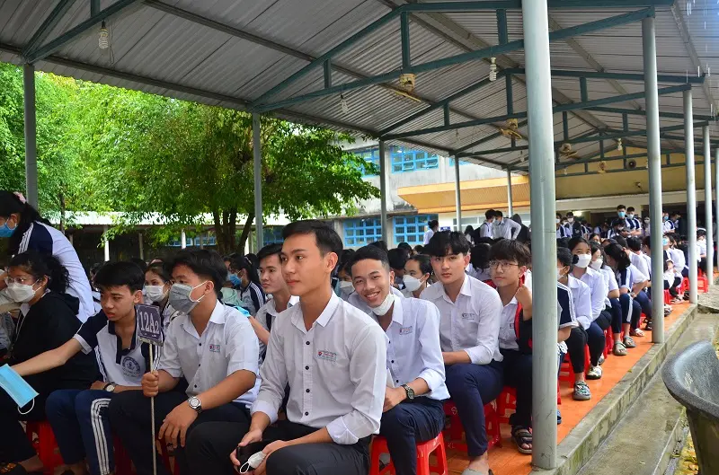 Tham dự chương trình còn có TS. Lê Thanh Hiếu - Trưởng Bộ môn Đại số & Hình học, Khoa Toán và Thống kê và PGS. TS Lê Công Trình - Trưởng Khoa Toán và Thống kê – Trường ĐH Quy Nhơn. Các em học sinh và giáo viên Toán của trường đã được thưởng thức bài giảng đại chúng với chủ đề "Toán học - từ đời sống thường ngày đến cách mạng công nghiệp 4.0" từ thầy Hiếu cũng như được các thầy chia sẻ thêm về chính sách ưu đãi, học bổng dành cho sinh viên theo học các ngành Toán ứng dụng (chuyên ngành Toán-Tin ứng dụng và Toán ứng dụng trong kinh tế và công nghiệp) và ngành Khoa học dữ liệu tại Trường ĐH Quy Nhơn.