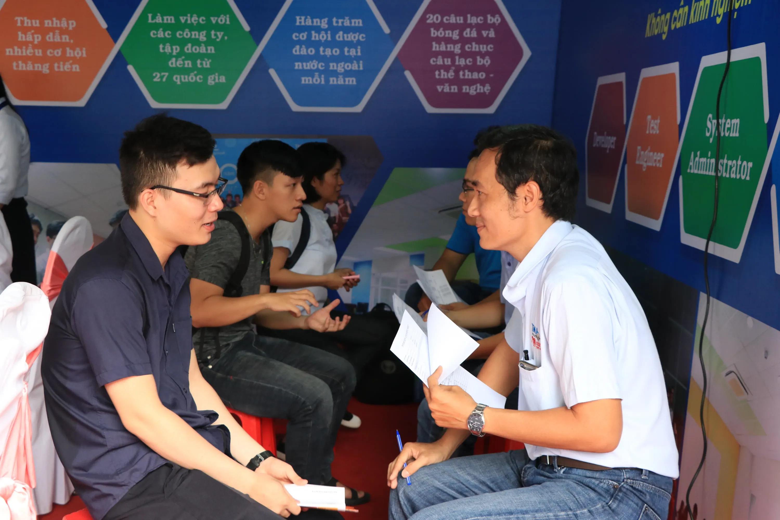 Cùng với đó, TMA cũng có mặt tại ngày hội "Sinh viên & Doanh nghiệp 2018" tại trường ĐH KHTN trong tháng 10 vừa qua. Các bạn ứng viên tiềm năng đã được phỏng vấn trực tiếp, nhận về cho mình cơ hội việc làm và nhiều phần quà hấp dẫn. Không chỉ có ngành CNTT, TMA còn thu hút được sự quan tâm của các bạn đến từ nhiều ngành khác với mong muốn tìm hiểu về công ty và cơ hội việc làm với nhiều vị trí hot.