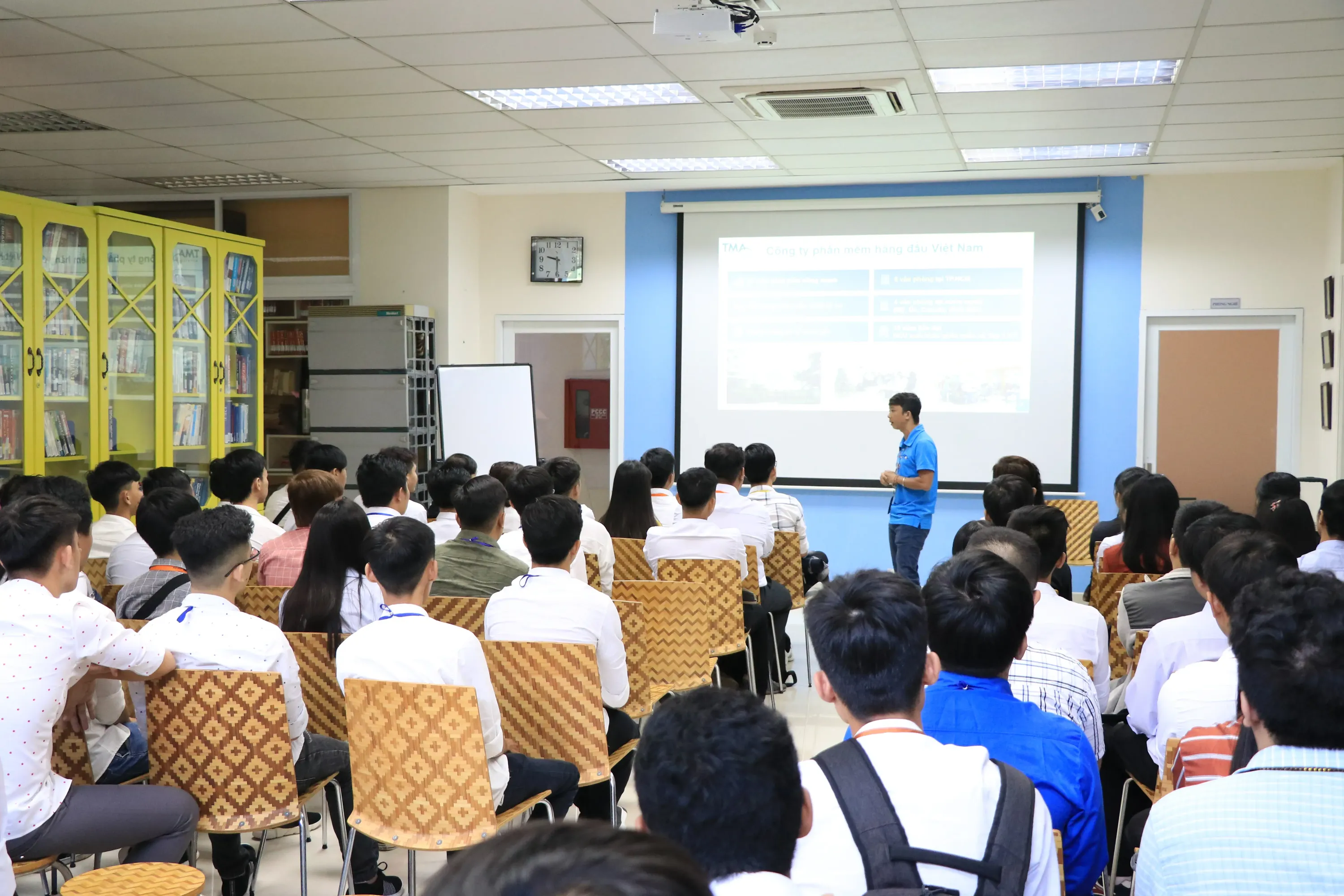 Ngoài việc giúp các bạn sinh viên "mục sở thị" TMA, chúng ta cũng đến với các bạn sinh viên Khoa Công Nghệ Thông Tin - trường ĐH Sư Phạm để chia sẻ về văn hóa, môi trường và cơ hội nghề nghiệp tại TMA. Tại đây, các bạn không khỏi ngạc nhiên về những công nghệ mà TMA Innovation Center đang áp dụng và bày tỏ mong muốn được tham gia vào những dự án AI/ML, Blockchain, Big Data, IoT thực tế.