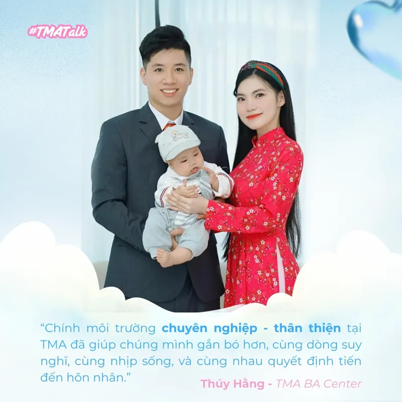Hành trình "về chung mái nhà" của Hằng và Nguyên là minh chứng sống động cho giá trị kết nối và phát triển mà TMA mong muốn mang lại cho tất cả thành viên, để công ty không chỉ là nơi phát triển sự nghiệp mà còn là nơi để mọi người có thể ghi dấu nhiều cột mốc quan trọng trong hành trình vun đắp cuộc sống của mình. Đối với Hằng và Nguyên, dấu ấn để đời của họ là nửa kia của nhau và cả nhóc tỳ đáng yêu - bé Gạo 2 tuổi!
