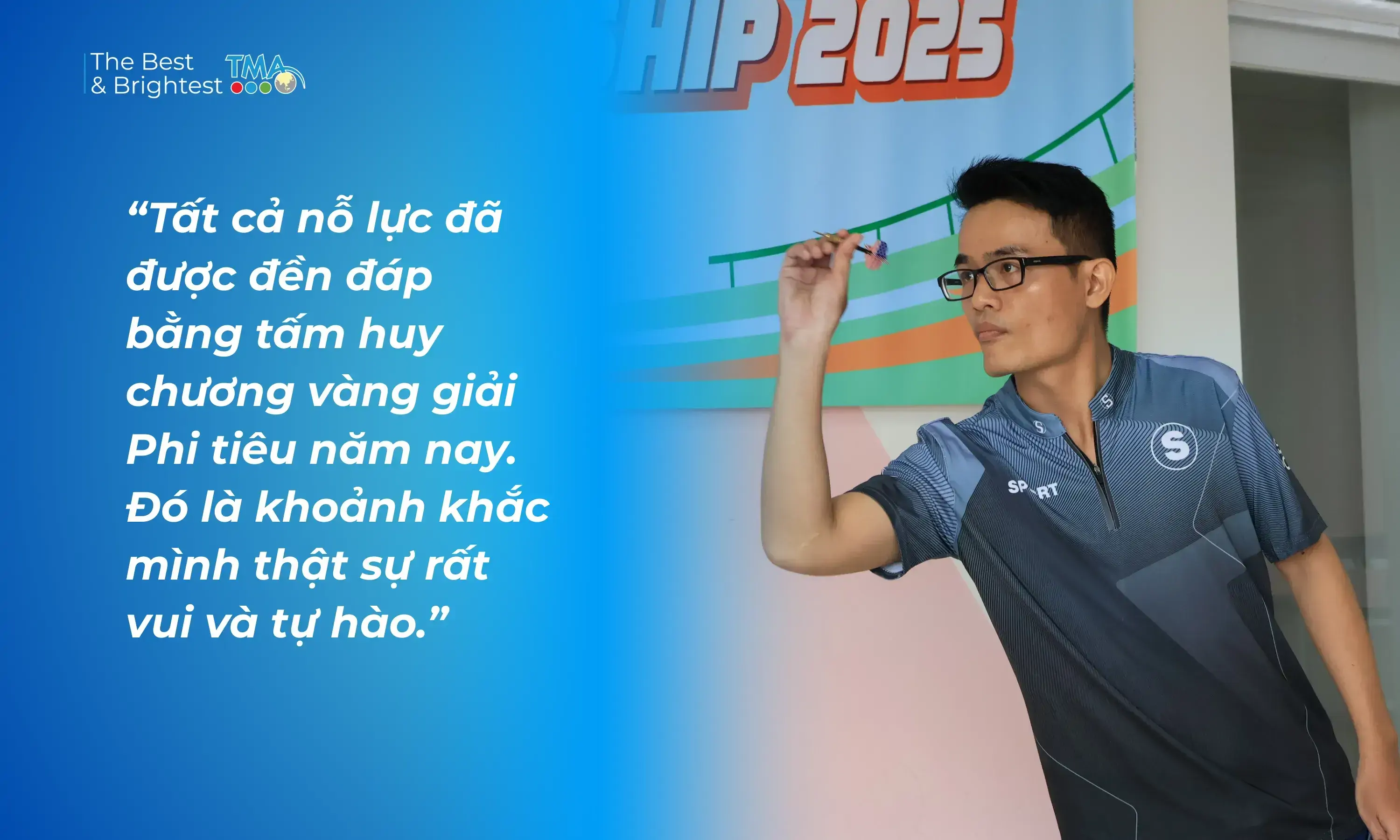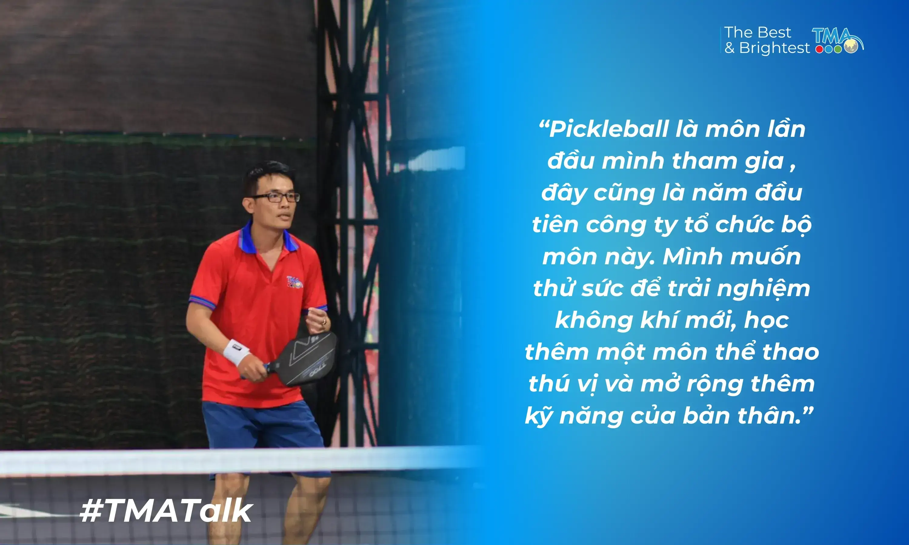 Với Lư Gia Lâm, hành trình thể thao tại TMA lại được vẽ bằng những gam màu nhẹ nhàng nhưng đầy bản lĩnh. Anh dành nhiều năm cho phi tiêu – bộ môn đòi hỏi sự ổn định và độ chính xác cao – đồng thời cân bằng bằng những lựa chọn đa dạng hơn như cầu lông, bida và gần đây nhất là pickleball. Nhắc về lần đầu tham gia bộ môn mới, anh nói: “Pickleball là năm đầu tiên công ty tổ chức nên mình muốn thử để khám phá thêm điều mới.” Mỗi giải đấu đối với anh là một cơ hội để rèn sự bình tĩnh và mở rộng kết nối trong công việc.