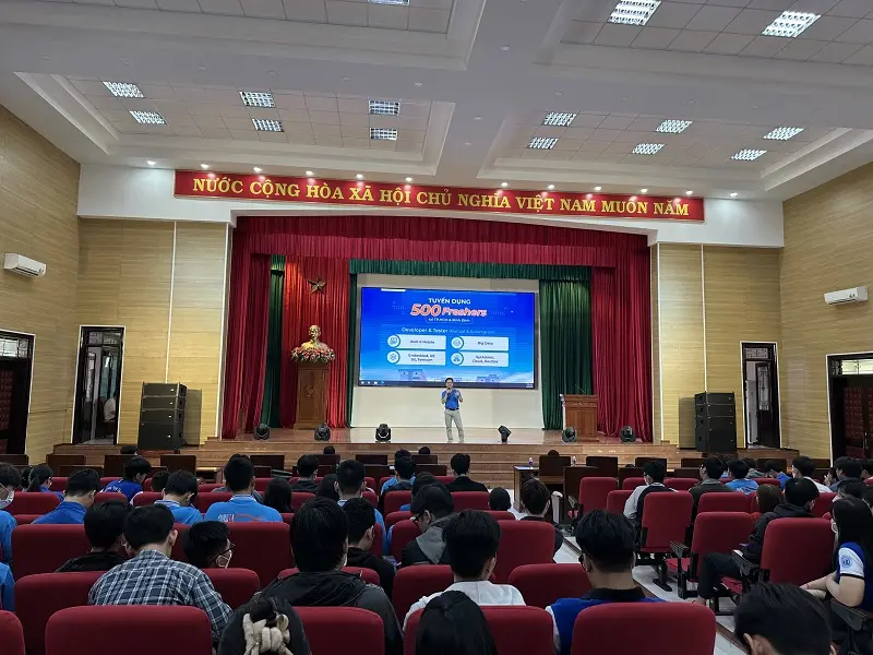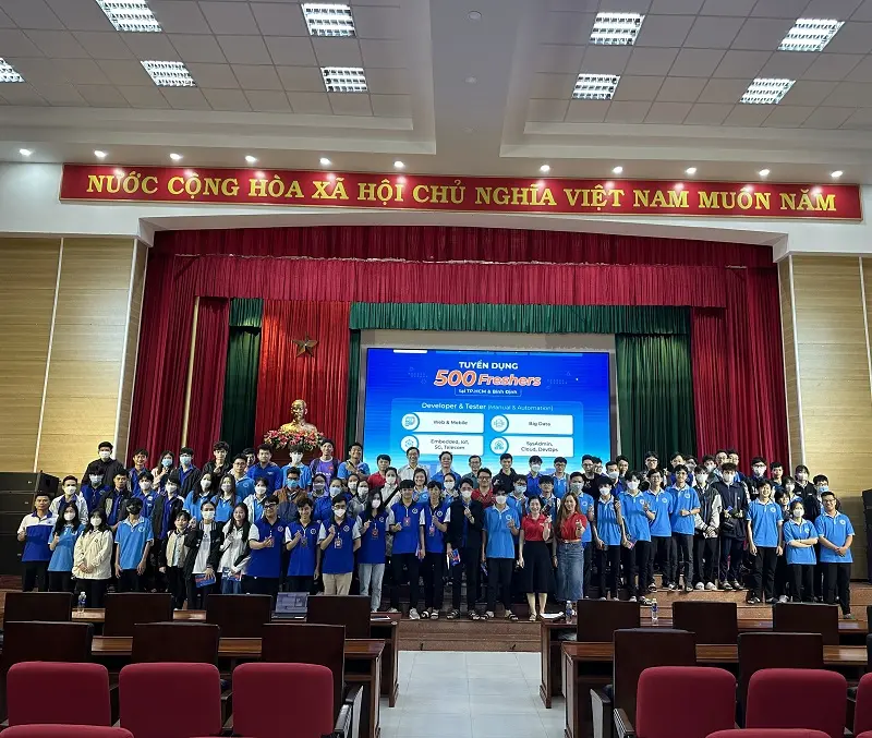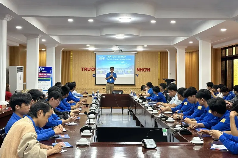 Thứ 7, ngày 22/4/2023 vừa qua, Công viên Sáng tạo TMA Bình Định (TIP) đã phối hợp cùng Khoa CNTT và Khoa Kỹ thuật Công nghệ - Trường ĐH Quy Nhơn tổ chức buổi giao lưu, chia sẻ đến hơn 200 bạn sinh viên với mong muốn kết nối và mang lại những thông tin hữu ích trong việc định hướng ngành nghề phù hợp cho giới trẻ, đặt biệt là các bạn có đam mê với lĩnh vực công nghệ.